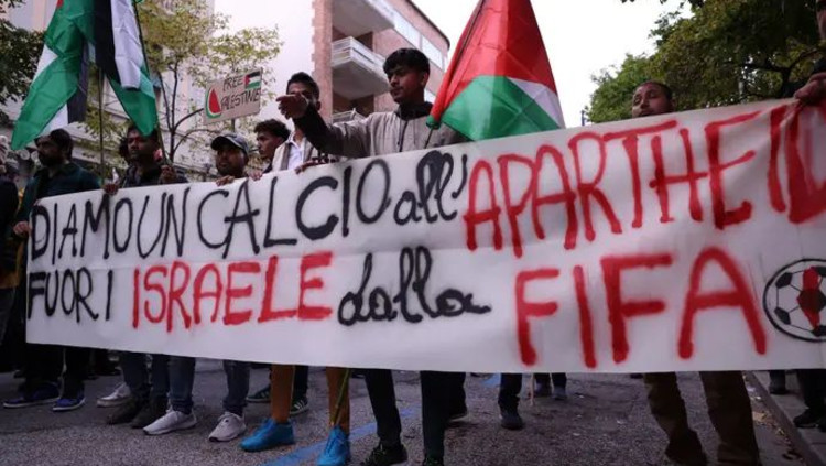 "בנבחרת ישראל משחקים חיילים": צפו בהפגנה הפרו-פלסטינית באודינה
