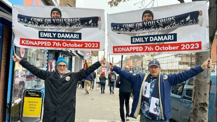 אוהדי טוטנהאם מפגינים למען החזרת החטופה אמילי דמארי
