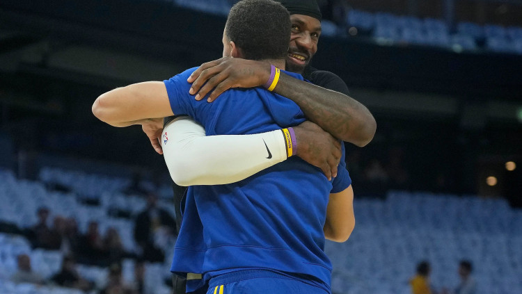 שחקן לוס אנג'לס לייקרס לברון ג'יימס עם שחקן גולדן סטייט ווריירס סטפן קרי