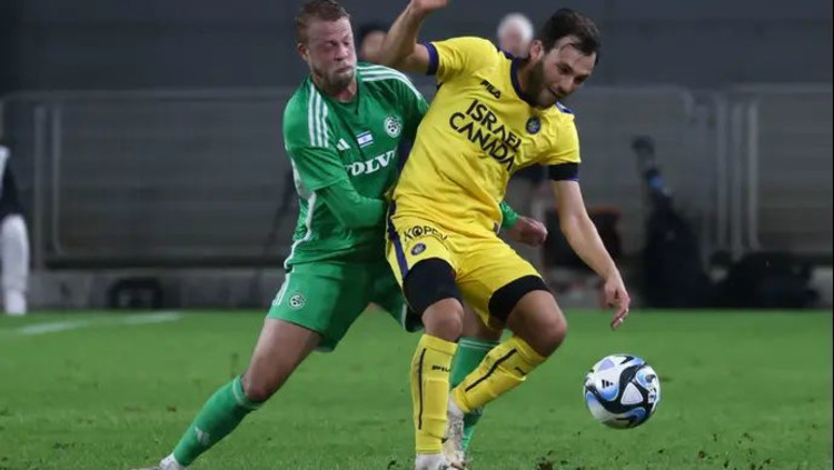 יוריס ואן אובריים שחקן מכבי תל אביב לפני דניאל סונדגרן שחקן מכבי חיפה