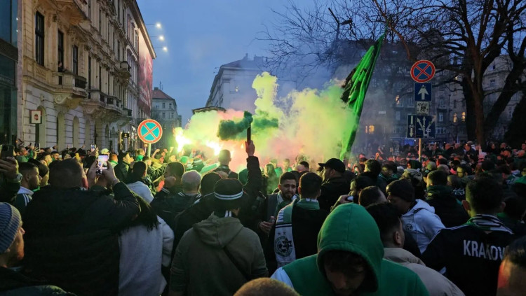 צבעו את בודפשט בירוק: צפו במופע של אוהדי מכבי חיפה לפני גנט