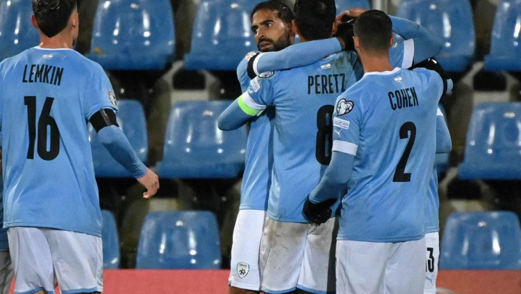 דור פרץ, אופיר דוידזאדה ושחקני נבחרת ישראל חוגגים