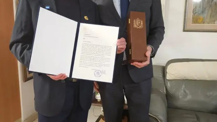 שופט העבר אברהם קליין עם שגריר הונגריה בישראל זולטאן סאנטגיורגי
