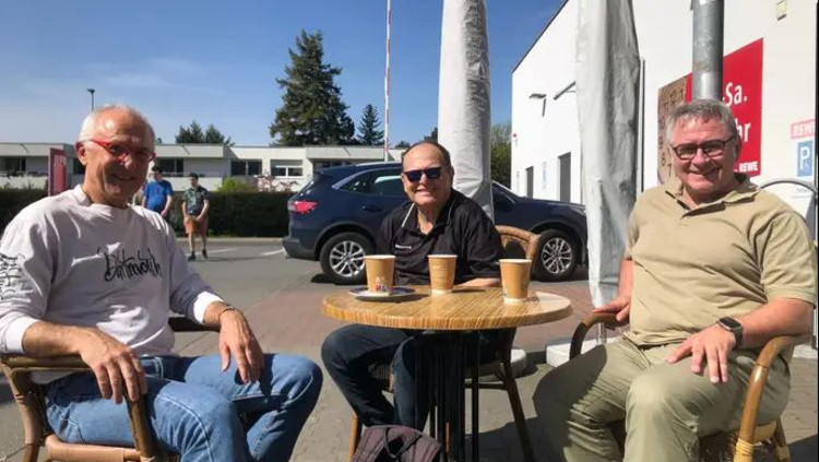 ד"ר מרק ורטהיים (במרכז) עם פרופ' שלהורן (משמאל) ומיכאל דר, הסקאוט של נבחרות גרמניה