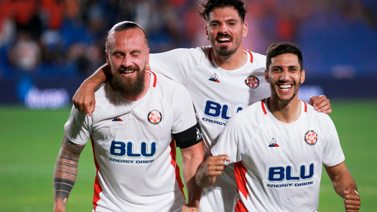 סלאח חוסיין, אופיר מזרחי, ג'ניה ברקמן שחקני הפועל נוף הגליל חוגגים
