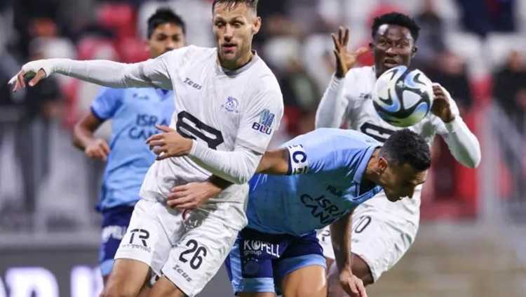שחקן מכבי פתח תקוה, רוי קורין, מול שחקן מכבי נתניה מקסים פלקושצ'נקו
