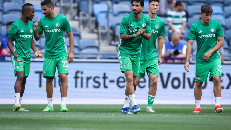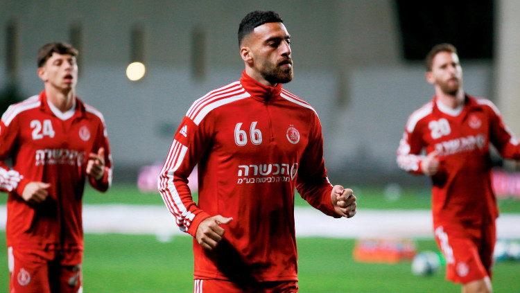שחקני מכבי חיפה בחימום, ליאור רפאלוב במרכז