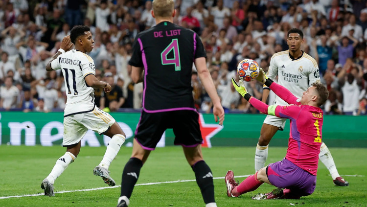מנואל נוייר שוער באיירן מינכן עוצר את רודריגו שחקן ריאל מדריד