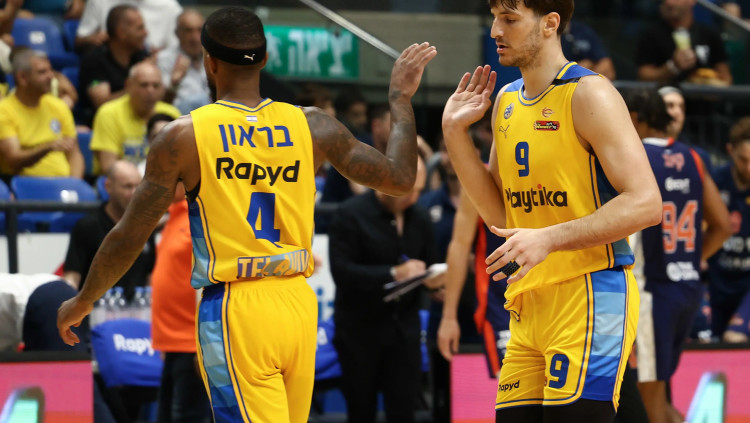 לורנזו בראון מכבי תל אביב לצד איתי שגב עירוני נס ציונה
