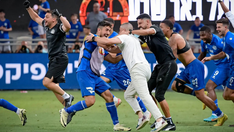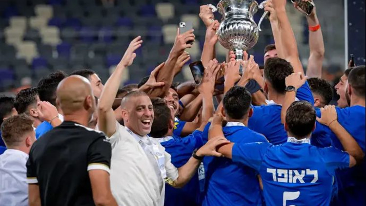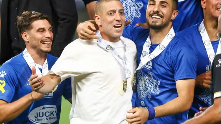 מוטי גלעדי חוגג את הזכייה של מכבי פתח תקווה בגביע המדינה