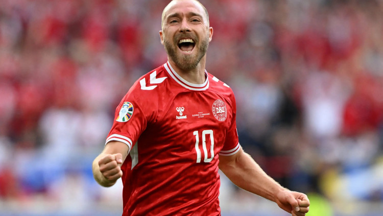 כריסטיאן אריקסן שחקן נבחרת דנמרק חוגג שער