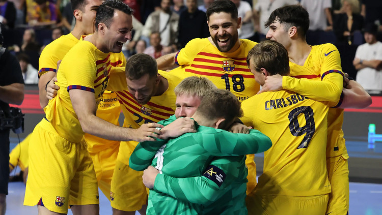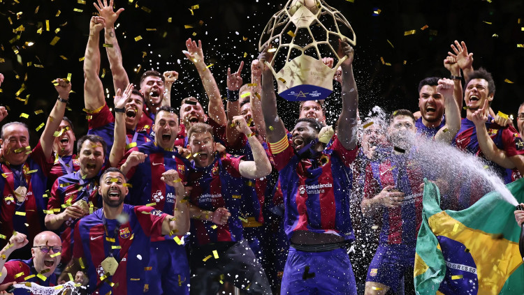 בפעם ה-12. שחקני ברצלונה חוגגים זכייה באליפות אירופה בכדוריד