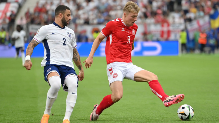 שחקן נבחרת דנמרק, רסמוס הוילונד, מול שחקן נבחרת אנגליה, קייל ווקר