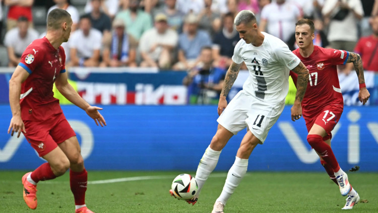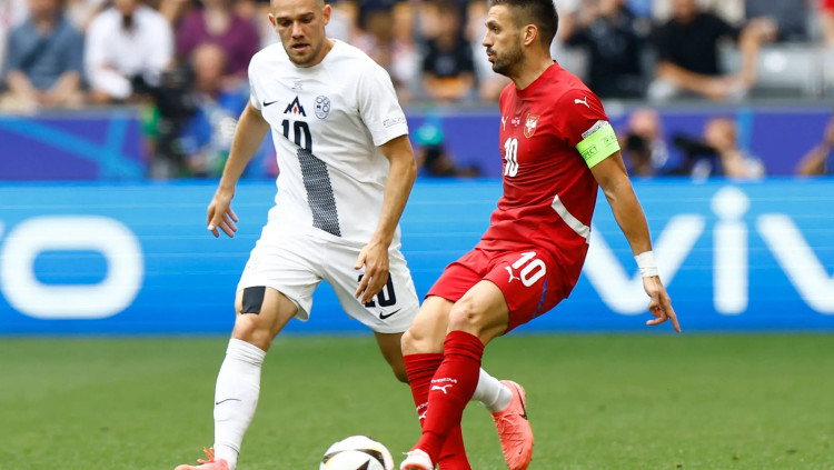 פיליפ מלאדנוביץ', שחקן נבחרת סרביה מול פטאר סטויאנוביץ' שחקן נבחרת סלובניה
