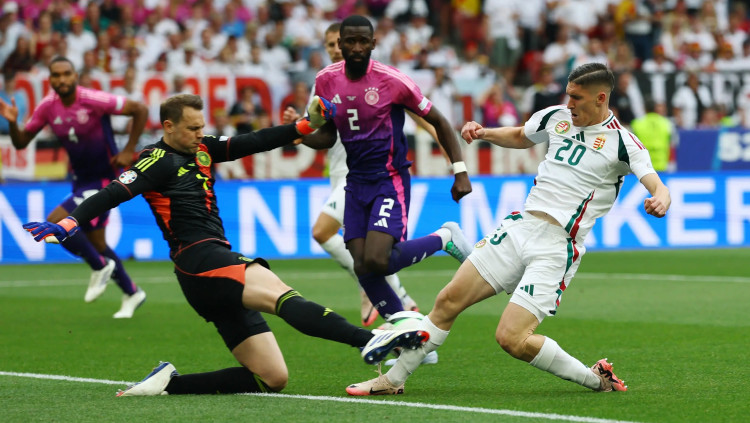רולאנד שולואי שחקן נבחרת הונגריה מול מנואל נוייר שוער נבחרת גרמניה