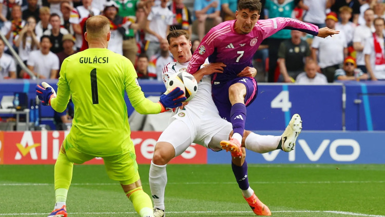 קאי האברץ שחקן נבחרת גרמניה נעצר אצל פטר גולאצ'י שוער נבחרת הונגריה