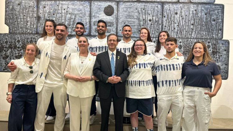 נשיא המדינה יצחק הרצוג עם נבחרת הג'ודו בטקס לכבוד יציאת המשלחת האולימפית לפריז