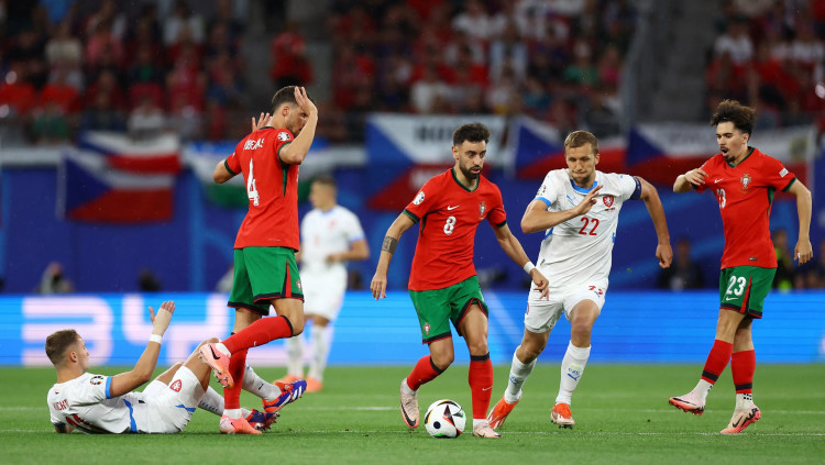 ברונו פרננדש שחקן נבחרת פורטוגל לפני תומאש סוצ'ק שחקן נבחרת צ'כיה