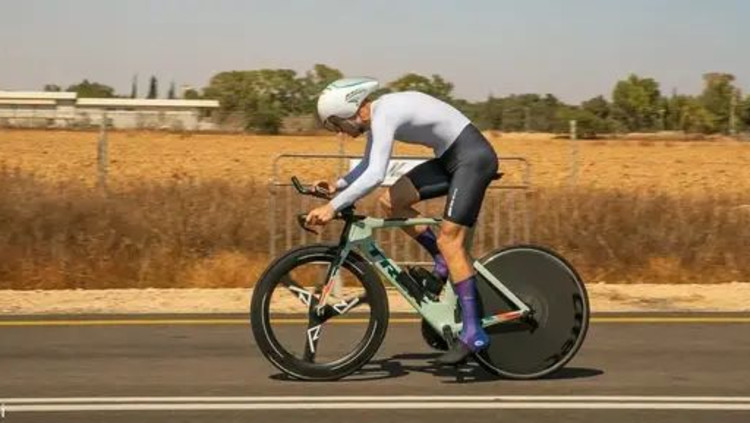 רוכב עם הקסדה והחליפה המיוחדת באליפות ישראל נגד השעון