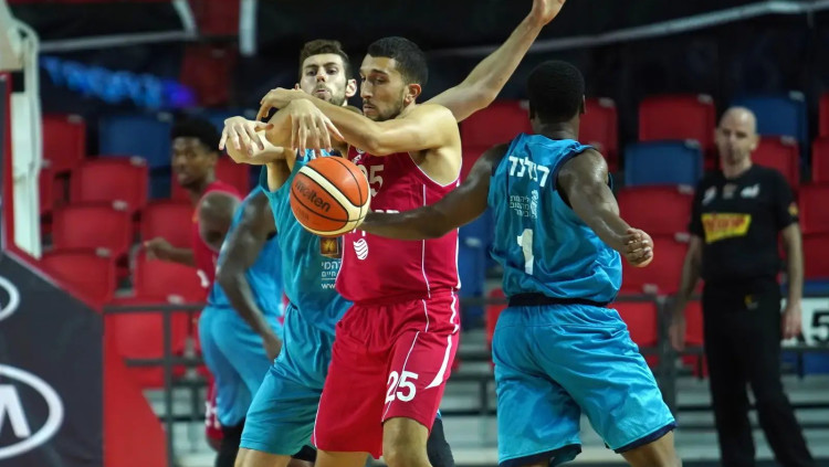 רביבו, ואן אובריים ואדו בהרכב מכבי תל אביב מול באצ'קה טופולה
