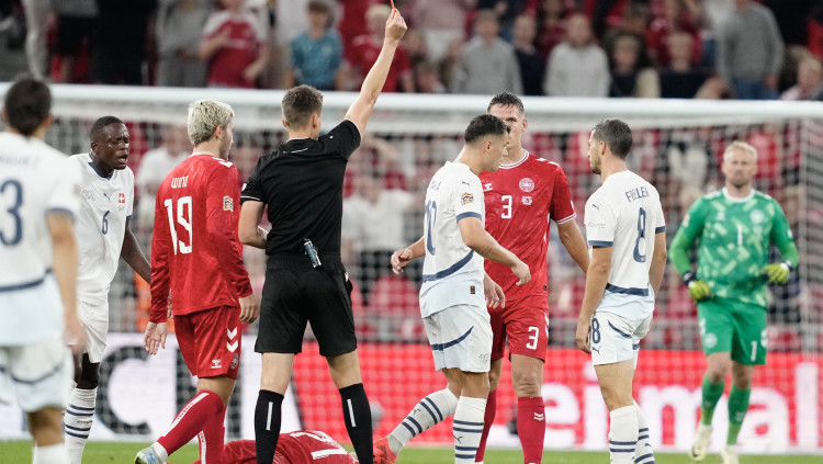 צפו: ג'אקה הורחק, 0:2 דרמטי לדנמרק על תשעה שחקני שוויץ