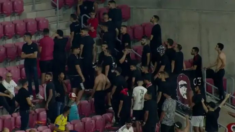 צפו: אוהדי הפועל ב"ש התעמתו עם אוהדי סכנין, שביזו את ההמנון