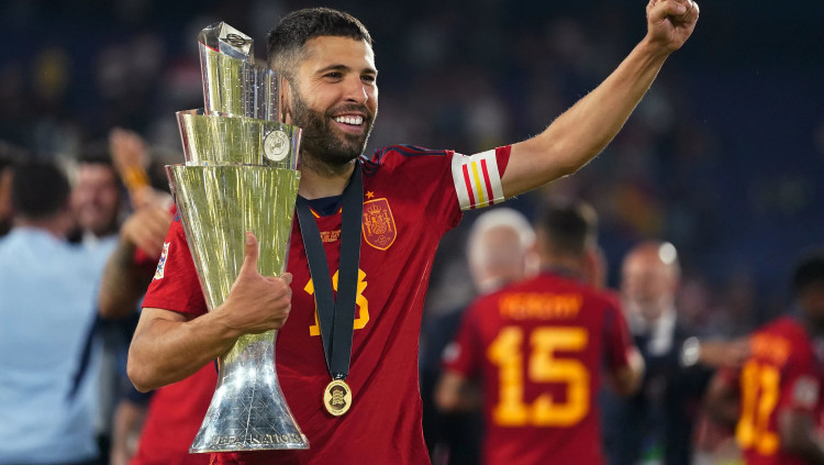 ג'ורדי אלבה קפטן נבחרת ספרד עם הגביע של ליגת האומות