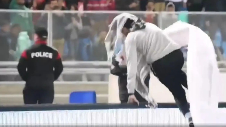 אוהד נבחרת טוניסיה פרץ לדשא עם דגל פלסטין, והשחית מודעה של "קארפור" שתומכת בישראל