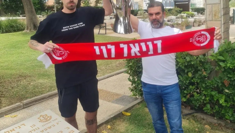 גביע היורוקאפ של הפועל תל אביב מונח על קברו של סגן עומרי שורץ, לוחם סיירת צנחנים שנהרג בקרב ברצועת עזה