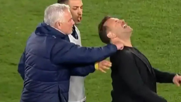 תקרית אלימה וביזארית: צפו במוריניו תופס את האף של מאמן היריבה