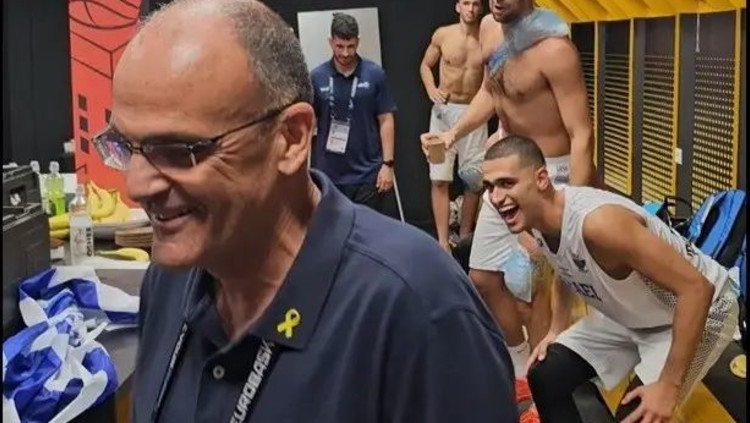 צפו: אריאל בית הלחמי חוגג בחדר ההלבשה את הניצחון של נבחרת ישראל על צרפת
