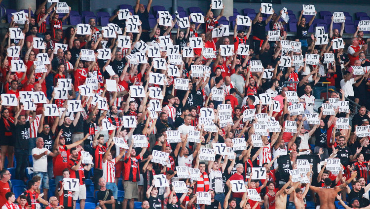 צפו בבלגן: אוהדים השליכו חזיז – ופגעו בכובש שער הניצחון שלהם