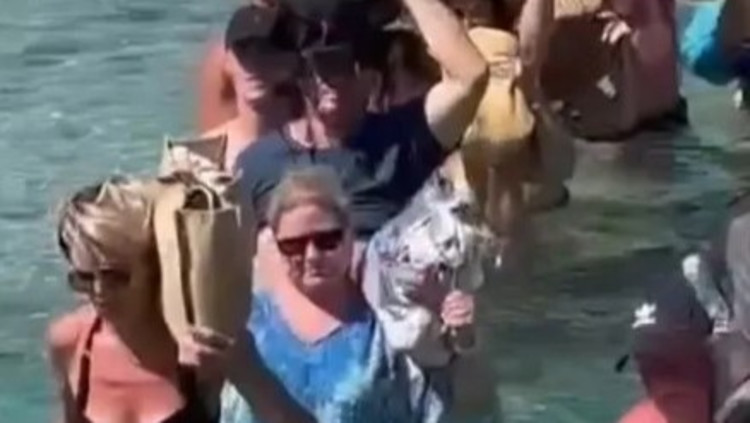 לא יאומן: תיירים נאלצו להיכנס עם התיקים לים כדי להגיע לחוף באלוס