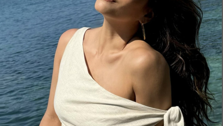 אווה לונגוריה לוהטת כשהיא מתהלכת בחוף בעיירה החדשה אליה עברה