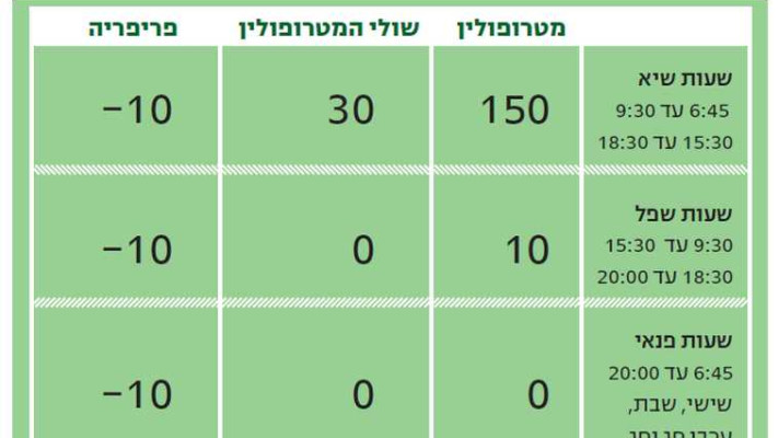 לצורך הניסוי הוגדרו שעות שיא (6:45־9:30 ו־15:30־18:30), שעות שפל (9:30־15:30 ו־20:00-18:30) ושעות פנאי (20:00־6:45 וכן סופי שבוע וערבי