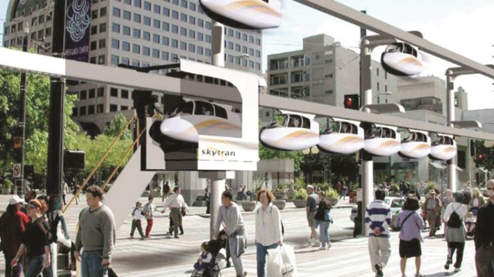 פתרון מסוג אחר, שגם הוא מבוסס על “תרמילים” לשני נוסעים, הוא רכבת עילית שנקראת Skytran – כפי שהוצג כבר לפני כשלוש שנים בישראל בכנס אילת־אילות. הרעיון שמאחורי Skytran (“רכבת השמיים”) הוא רשת מסילות בגובה של כשלושה מטרים מעל למפלס הקרקע, שעליה נעים במהירות רבה קרונות אישיים אוטומטיים, למעשה סוג של מעליות אופקיות, ומסיעים את הנוסעים אל יעדים מדויקים על רשת המסילות. הקרונות נעים באמצעות השראה מגנטית – פתרון שכבר מיושם ברכבת המהירה ביותר בעולם, שפועלת בסין, וכבר לפני שלוש שנים פורסם שמנכ”ל החברה הזאת, ג’רי סנדרס, ביקר בתל אביב ובגוש דן רבתי, ובחן מספר אתרים המתאימים לפיילוט של המערכת.