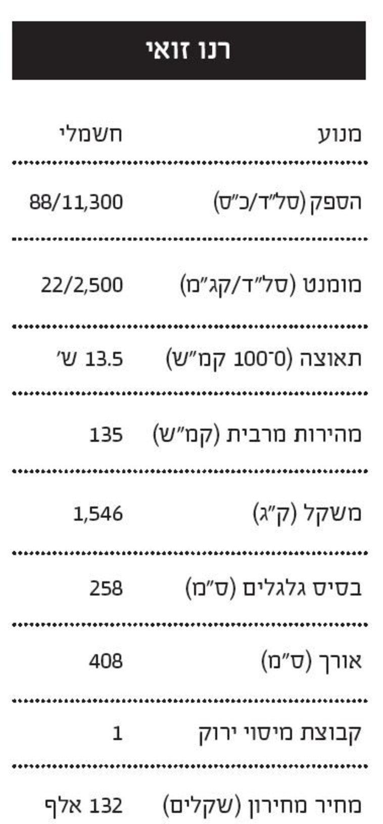 היבואנים, שבודקים כרגע את הדופק, סיפרו כי מי שכבר רכש את זואי הם רוכשי פלואנס המנוחה - אלה שממשיכים לבנות על חשמל כעתיד המוטורי. כנראה שמי שהתחיל, מתמכר, כי מכונית חשמלית זה בכל זאת קטע. אומנם אפשר לתגבר את המכונית ברעשי מנוע מלאכותיים, כדי שתהיה תחושה של רכב וגם מסביב יבינו שמכונית מתקרבת ולא תהיה הפתעה של הרגע האחרון, אבל באופן כללי מדובר במכונית חרישית. תוסיפו מתלים שמכוונים לצד הנעים של הישבן, וזה כמעט כמו מוזיקה קלאסית, למי שכמובן אוהב. אני יותר בעניין רוק כבד, אבל זה כבר עניין של טעם אישי.