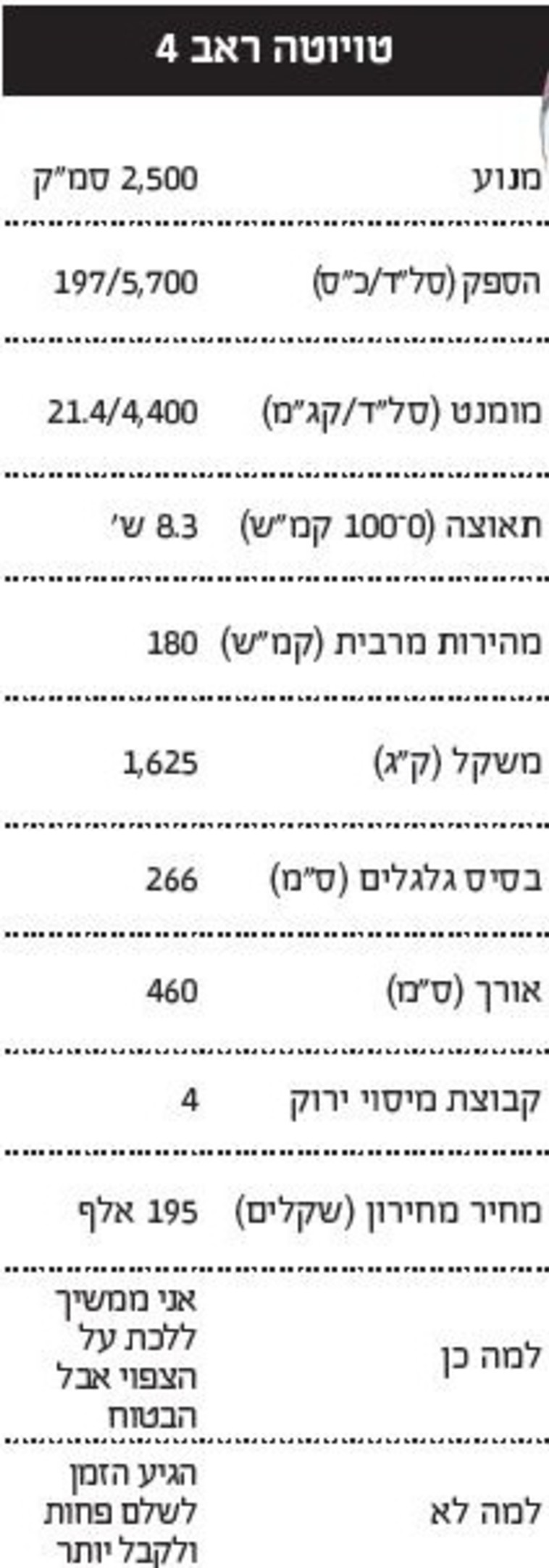 ראב 4 הוא לא ג'יפון לכל כיס, אבל מצד שני יש לו תעודת יוחסין שרכבים אחרים רק יכולים לחלום עליה. כמו המסעדות האלה שתמיד חוזרים אליהן בגלל השלט שתלוי בחזית: "פתוחים מ–1994".