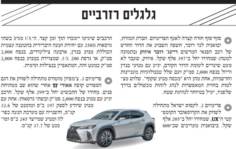 זה היה משפט שדה קצר וקשוח, ובסופו ניתן גזר דין אכזרי במיוחד. "אתה אמיתי?", צרח עלי השופט, כשנכנסתי ללשכתו בתקווה להליך הוגן ומקל. "אתה כותב על מכונית יגואר דו–מושבית כשלאנשים פה אין כסף לפיאט יד שנייה מנוכל? לאיפה נעלמה הבושה?". ניסיתי לגמגם שיש שוק לא רע לנישה, וזה קצת יוקרה בים של אפרוריות, ולשבוע הבא יש לי כתבה מוכנה על מרצדס, חבל על הזמן. אחת עם מסך מולטימדיה שלא נראה כמותו מאז ההברקה האחרונה של וולוו.