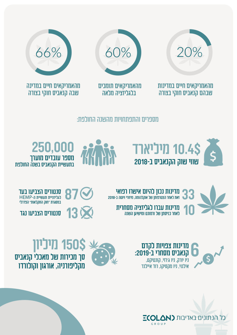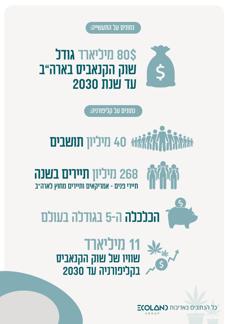 בעשר מדינות בארצות הברית קיימת כבר לגליזציה מלאה של קנאביס, וההערכה היא שמספרן רק יעלה, עקב תמיכה ציבורית ברעיון הלגליזציה וצעדי חקיקה מתקדמים. את שוק הקנאביס המסחרי מובילה, איך לא, קליפורניה – המדינה שהיא אולי הסמן המתקדם ביותר של הכלכלה האמריקאית והעולמית.