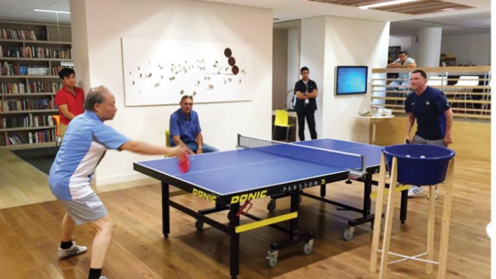 שגריר סין בישראל ז׳אן יונג־סין נפגש למשחק טניס שולחן עם יו״ר הכנסת יולי אדלשטיין בבית הישג בשדרות רוטשילד בתל אביב.