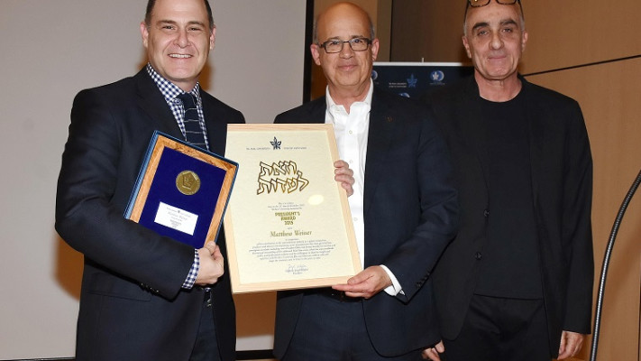 התסריטאי והמפיק היהודי-אמריקני, מתיו ויינר, שהוא יוצר הסדרה המדוברת "מד מן" ומכותבי ומפיקי הדרמה המצליחה "הסופרנוס", התארח אמש (שני) יחד עם רעייתו לינדה, באירוע של המועדון העסקי-אקדמי של אגודת הידידים של אוניברסיטת תל-אביב. במהלך הערב קיבל ויינר את "אות הנשיא", מטעם נשיא האוניברסיטה, פרופסור יוסף קלפטר, בגין תרומתו לתעשיית הטלוויזיה.