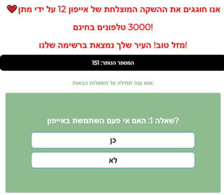 לאחר שהגולשים הקליקו על הלינק, הם קיבלו הודעה כי שמחים לבשר לו שהעיר שלו יכולה להשתתף בפעילות ומוצגות בפניו מספר שאלות של כן או לא.