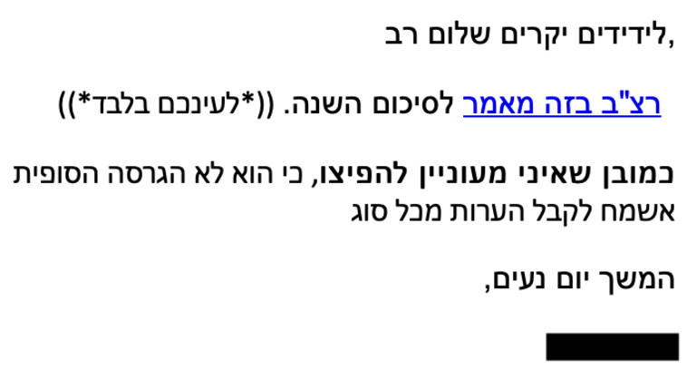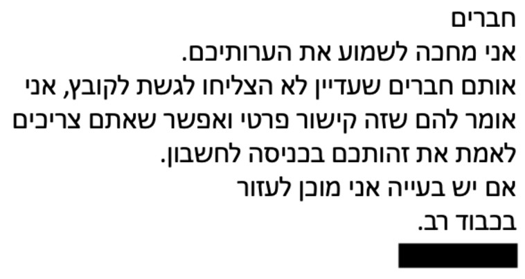 ביום ה- 6 לתקיפה נשלח המייל הבא: