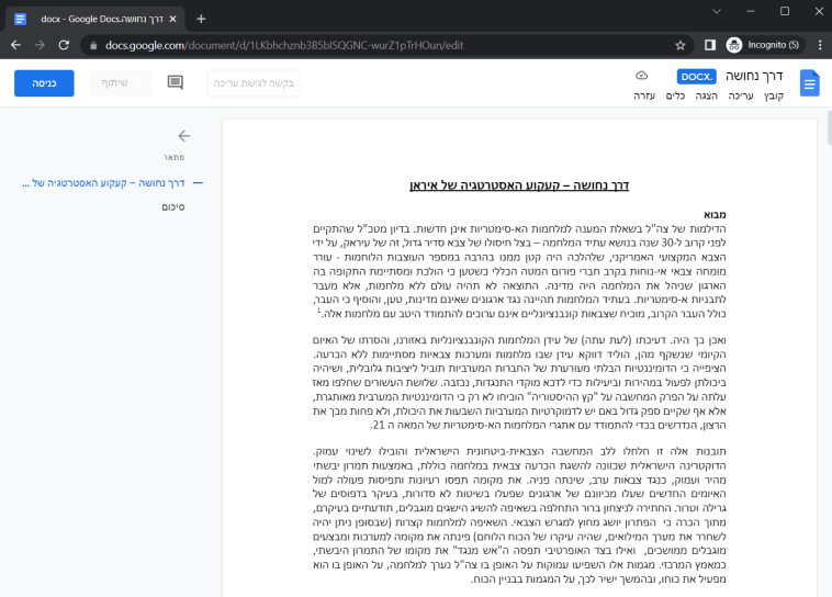 ממיפוי תשתיות התוקף, נמצא מסמך בשם "דרך נחושה- קעקוע האסטרטגיה של איראן", חוקרי צ'ק פוינט סבורים שמסמך זה נשלח אל ראש מכון מחקר מרכזי בישראל.
