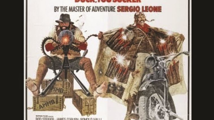 גם אם אני פותח את שערי הגיהינום שלא במהרה ייסגרו, איני יודע לשקר. המערבון הטוב ביותר של ליאונה, הסרט שהוא ביקש להיות מפיקו בלבד והציע לפיטר בוגדנוביץ׳(אלוהים לבדו יודע מדוע) לביים עבורו וקיבל סירוב, הוא Duck, You Sucker, ששמו שונה פעמים רבות ובאחת מהן נקרא ״בעבור חופן דינמיט״. לא מזיק שבסרט משחק ג׳יימס קובורן, אחד השחקנים האמריקאים החביבים עלי ביותר שמעולם לא זכה בהוקרה שהגיעה לו, מול רוד סטייגר, שחקן בעל נטיות מוגזמות שדווקא מצא את מקומו בתפקיד חואן, הבנדיט המקסיקני.