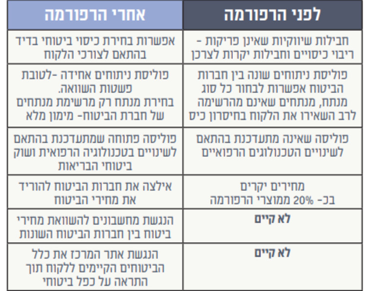 - הרפורמה קבעה שמוצרים החדשים פתוחים ויעודכנו בהתאם לשינויים הטכנולוגים בתחום הבריאות. השיפורים במוצרים היו ללא שינוי במחיר!
