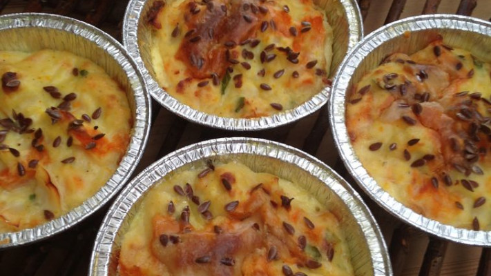 הפעם דילגתי על הטכניקה הקלאסית להכנת המעקוד ובחרתי להכינה בתוך תבניות אלומיניום אישיות. החלטתי לאפות ולא לטגן בשל היתרונות הבריאותיים, מהירות ההכנה וצורת ההגשה.
