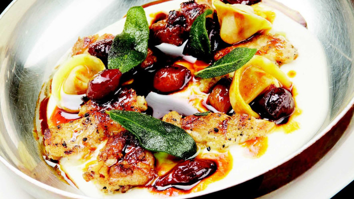 גם המנה הראשונה השנייה לא מכזיבה: שקדי עגל עם טורטליני בטטה, קרם ארטישוק ירושלמי וציר בצלי פנינה (72 שקלים). צל״ש מוענק לקרם הארטישוק המעודן והאוורירי. שקדי העגל השומניים (אגב, פחות מ-10% שומן) עשויים היטב, ומשתלבים נפלא בציר המתקתק. אגב, פרט טריוויה: שקדי העגל אינם מצויים בפיו של העגל. למעשה, זהו הלבלב.