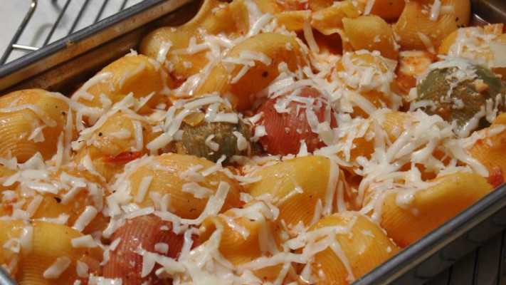 בקערה רחבה מערבבים את כל חומרי המלית. בעזרת כפית, או שקית זילוף, ממלאים את קונכיות הפסטה במלית הגבינה ומניחים על מגש.